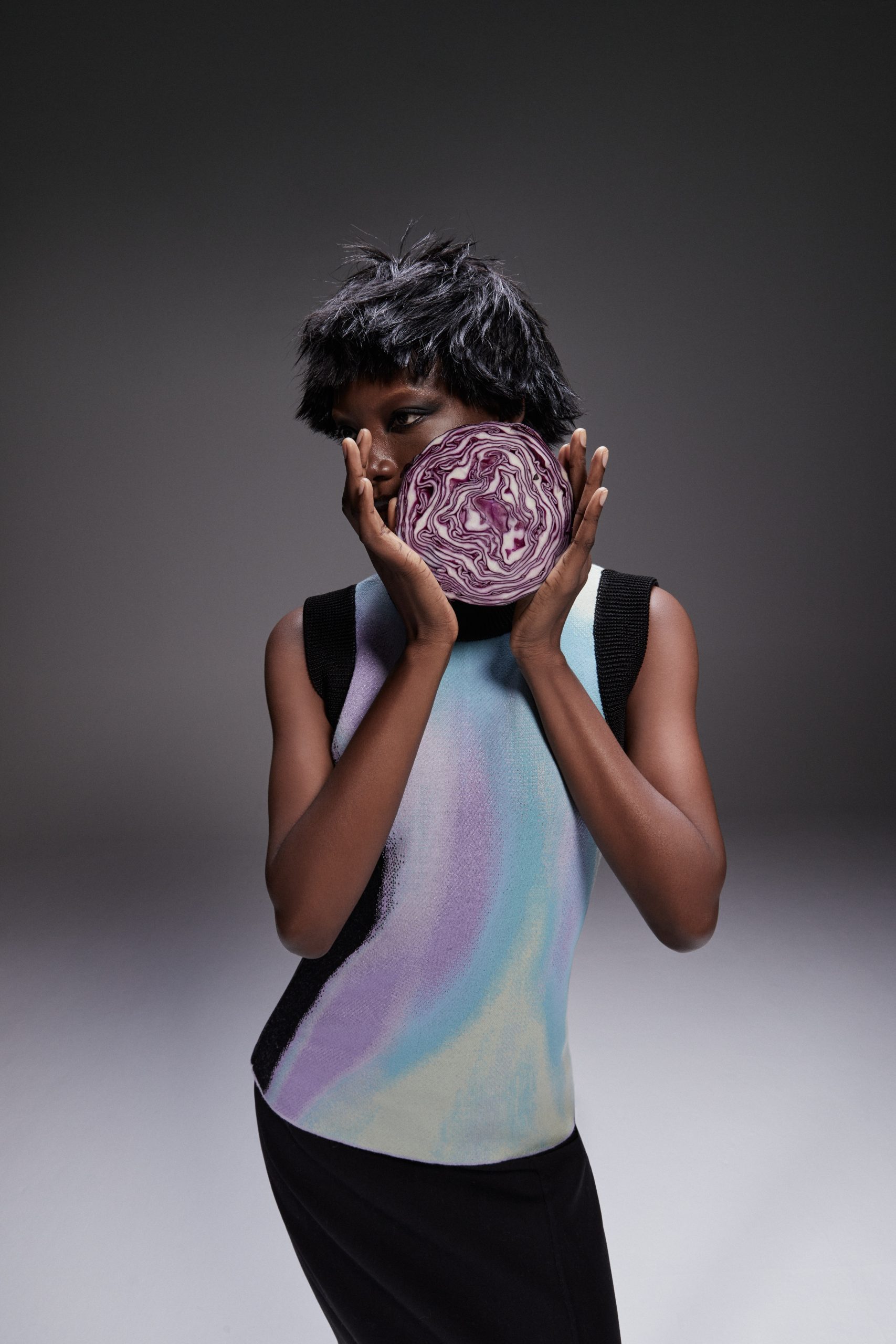 Il risultato finale è maggiore della somma delle sue parti, perché a integrare gli abiti c’è la personalità di chi li indossa, lusingata da crêpe, seta, lana, o addirittura lino, quasi tutti in versione double con abbinamenti impensati. La tavolozza dei colori incorona il nero come sovrano incontrastato, il cui regno è interrotto da lampi rivoluzionari di viola, verde assenzio, rosa corallo in alcune stampe astratte ispirate ai tagli di Lucio Fontana, di cui Mila Schön era amica e collezionista. Una collezione che s’impone per la sua atemporalità ma anche per il suo essere perfettamente nell’aria dei tempi. «La semplicità è la sorella dell’intelligenza» è una citazione di Costantin Brancusi che Audibet ha fatto sua, dove per semplicità s’intende la conseguenza di un’attenta costruzione per un’estetica che vuole sottrarsi a un esasperato consumismo. Sono abiti e accessori che sono pensati per durare, richiamano una nuova arte del vivere che ci porta a una dimensione semplicemente contemporanea.