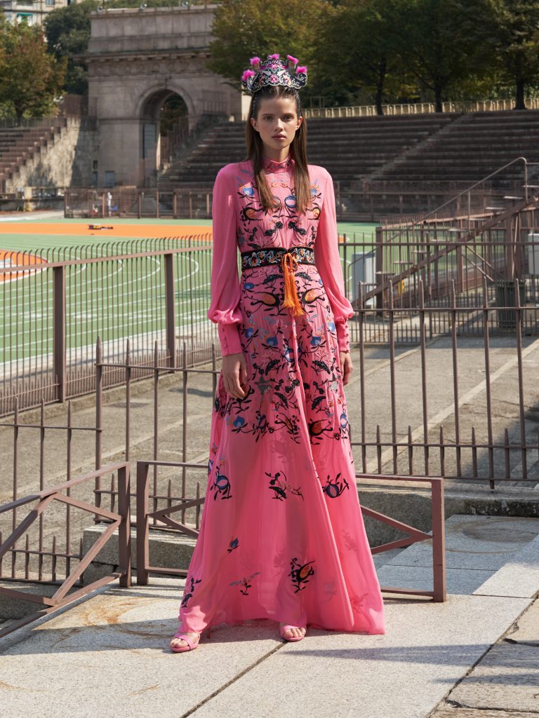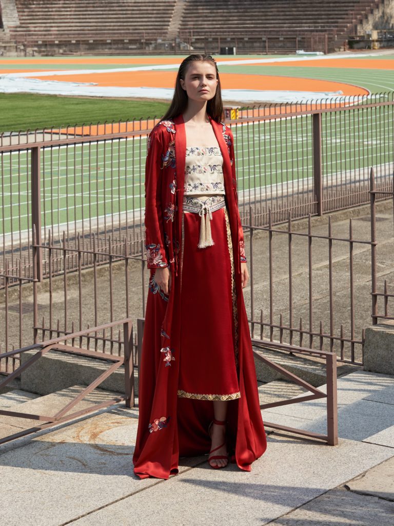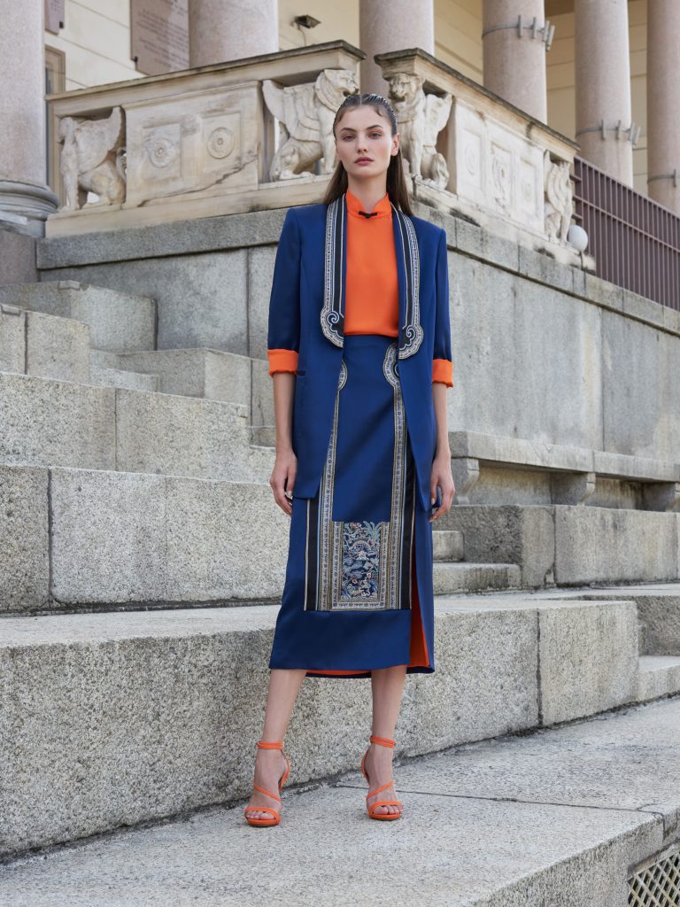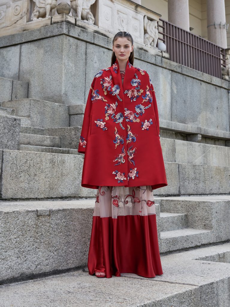 In primo piano è il carattere artisticamente opulento della collezione che traduce l’ars decorativa dei ricami e delle stampe dal sapore orientale in outfit capaci di rappresentare una femminilità attuale, decisa, intensa.