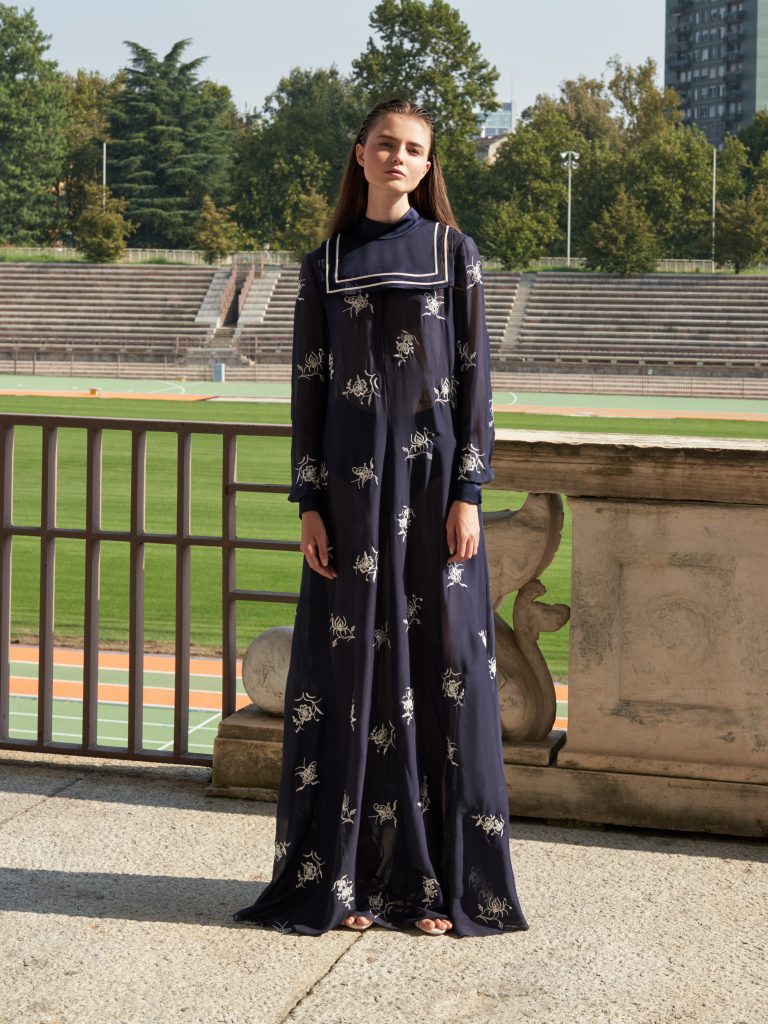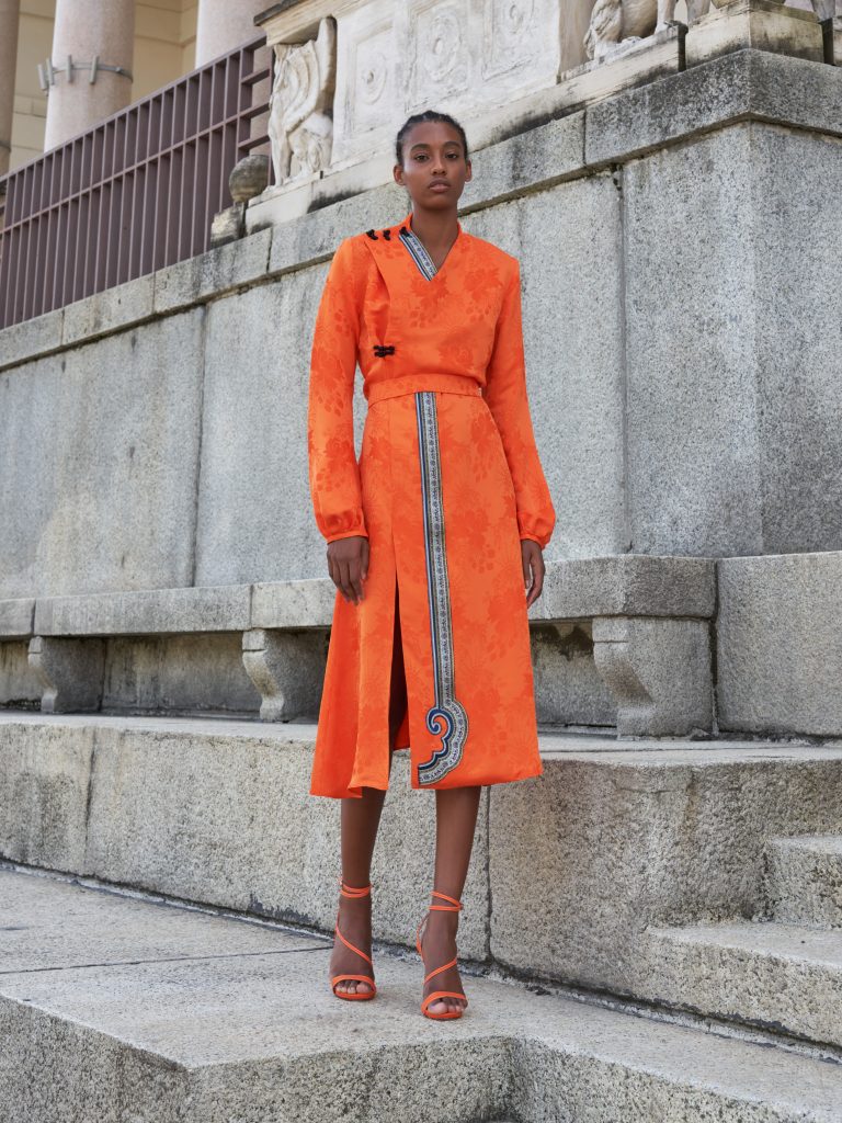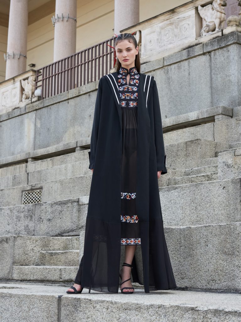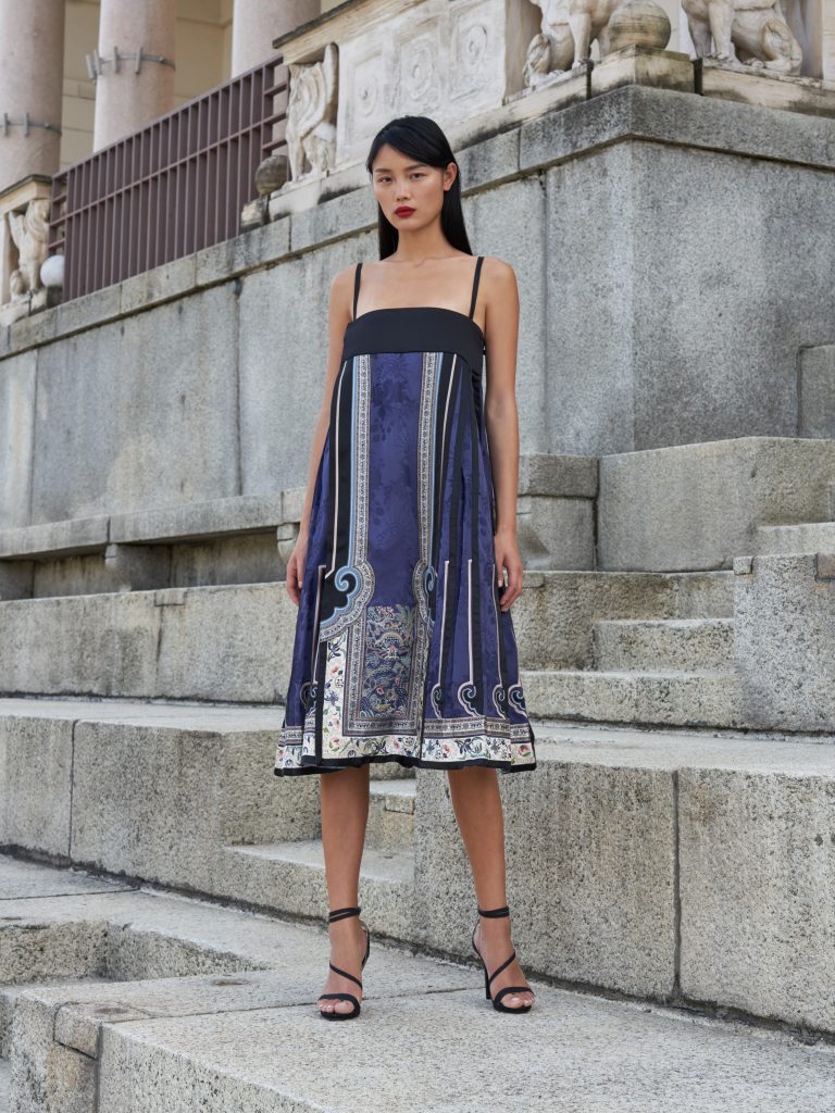 In primo piano è il carattere artisticamente opulento della collezione che traduce l’ars decorativa dei ricami e delle stampe dal sapore orientale in outfit capaci di rappresentare una femminilità attuale, decisa, intensa.
