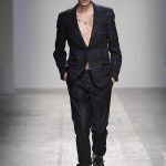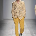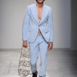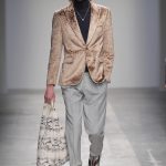 L’uomo Miguel Vieira indossa in questo anomalo inverno, freschi canvas, bombazine, velluti stampati, velluti vinilici, tessuti trapuntati e borse in pelle e stampate pitone, delle maxi shopper che si confondono con la fauna africana. Insomma un uomo che predilige il caldo, il sole, i climi temperati, i luoghi selvaggi e i panorami vasti ed infiniti, quelli per cui l’orizzonte non arriva mai e i viaggi non hanno mai fine.