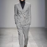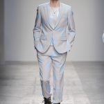 Oltre ai tenui beige e ai greige, il designer propone capi in carta da zucchero, che fanno pensare più ad una giornata primaverile che a una notte fredda e tempestosa.