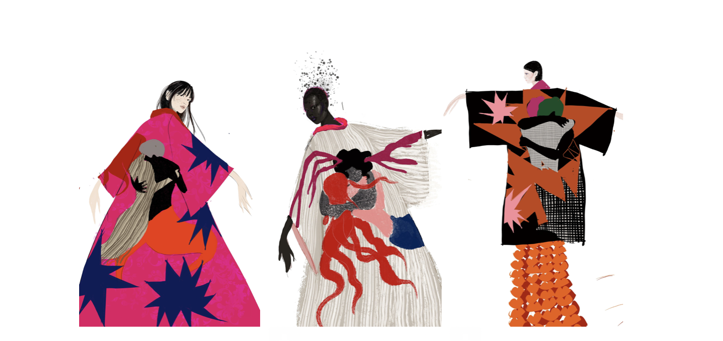 Si tratta di Kimono che raccontano della riconnessione tra gli esseri umani e le figure magiche degli altri mondi, i quali si ritrovano in un abbraccio impresso dai fili per sempre, a sostegno della diversità.
