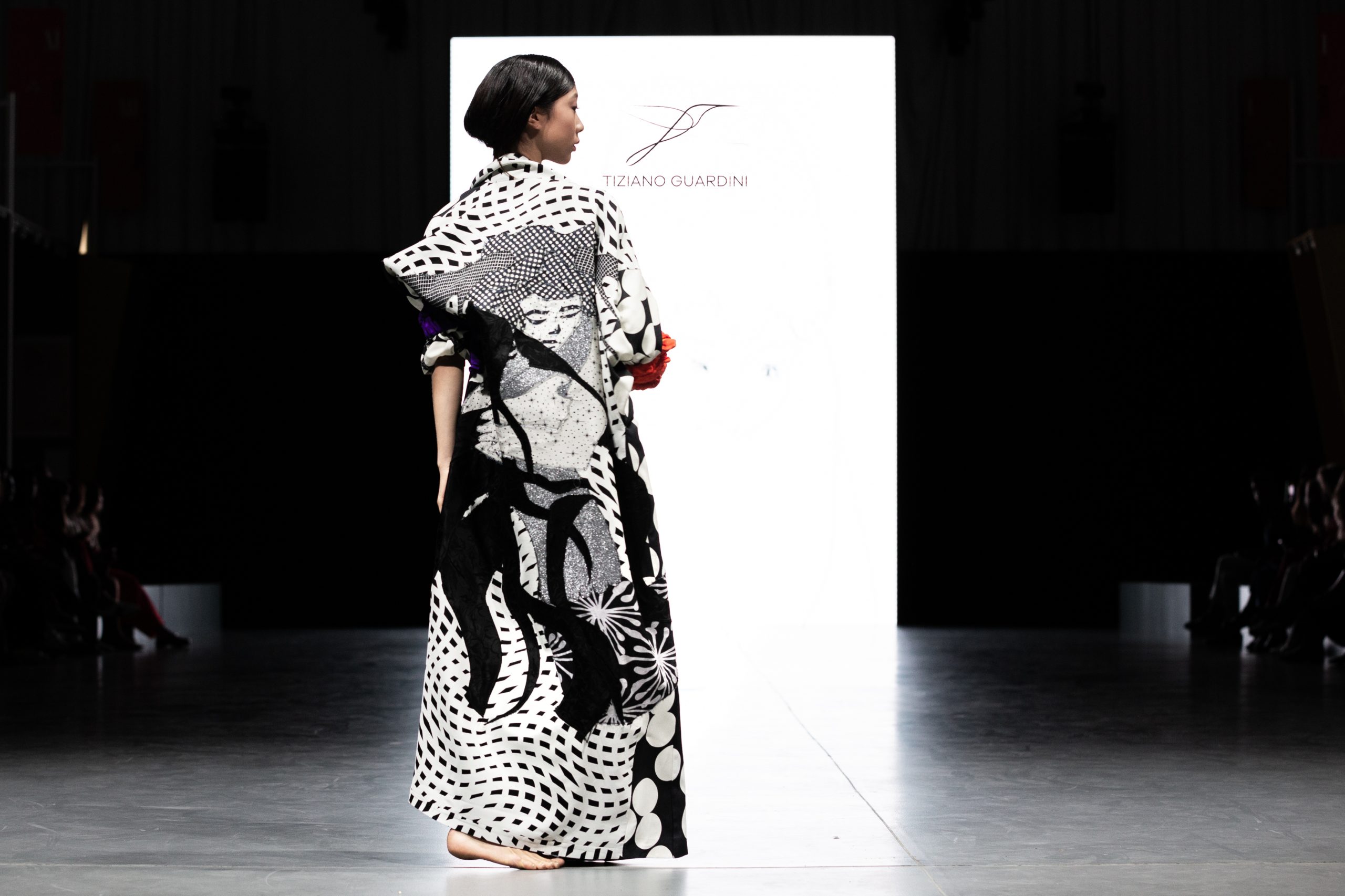 Con il cuore, invece, ci si riconosce tutti appartenenti alla stessa verità, La Vita. I Kimono, come pezzi unici, celebrano quindi la preziosità di ogni essere vivente ma anche del prodotto di per sé, il quale è il risultato di materiali e persone che veicolano il valore che deve essere raccontato e conservato. Tiziano Guardini vuole fare della sua moda arte, che non si esaurisce in una stagione ma che si augura continui ad accrescere il suo valore nel tempo proprio come un’opera d’arte. Così come la natura, che ha creato e continua a creare per preservare La Vita.