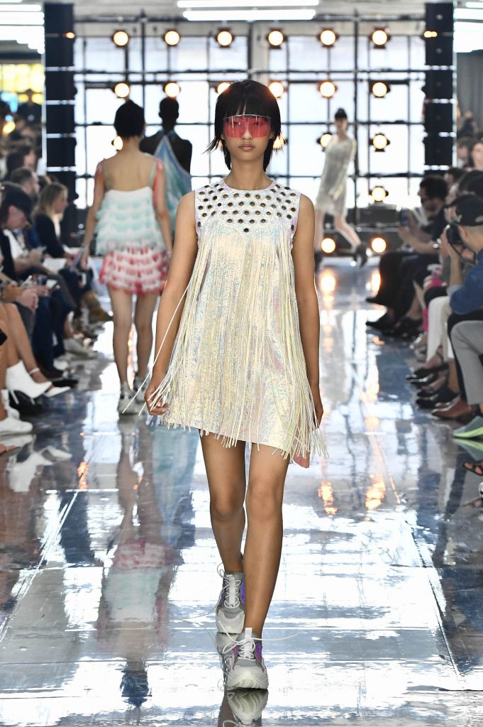 Tute spaziali abbinate a maxi mascherine specchio, il tessuto tecno si fonde con i colori psichedelici che assume la città di notte, quando la festa inizia, il caldo cala e le menti possono dar libero sfogo alla fantasia.