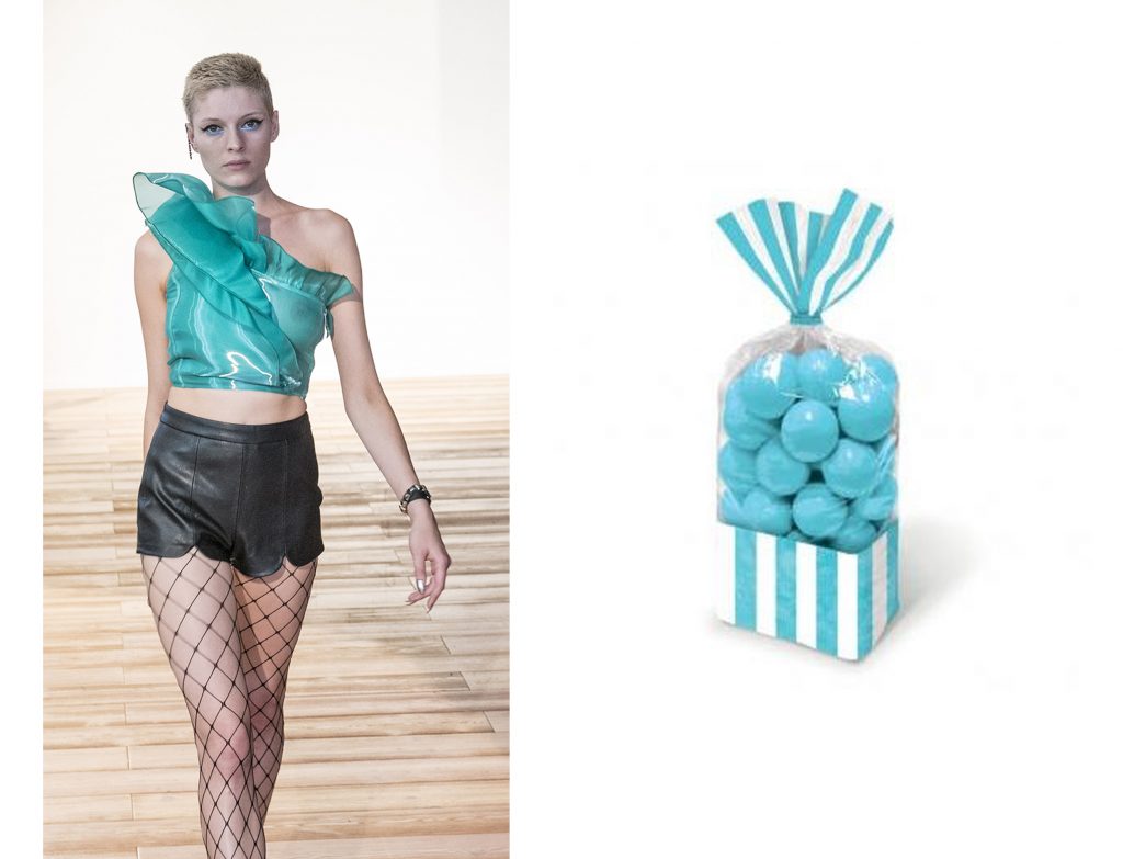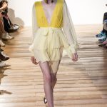 E’ una Primavera Estate 2018 dove la leggerezza fa da padrona: rasi e sete, preziosi tulle inseriti come ricami, formano dei simil-petali, impreziosiscono le paillettes e i nastri tono su tono. I top con le ruches ricordano delle caramelle da scartare, i materiali vengono mixati con giochi di contrasto.