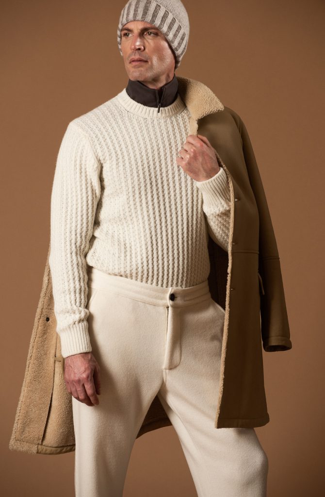 All’interno della collezione FW24, Cruciani ha inoltre dedicato una esclusiva capsule collection, ispirata all’eleganza delle località esclusive di alta quota come Saint Moritz con il suo lussuoso Grand Hotel Des Bains Kempinski. I capi pensati per l’après-ski di qualità e tendenza, classificati tra le finezze 3-5, sposano la sofisticatezza dei jacquard e dei punti maglia in cashmere e misto cashmere. Questi tessuti si adattano splendidamente alle variazioni termiche dell’ambiente alpino, regalando un comfort assoluto senza compromettere lo stile e la morbidezza dei capi.