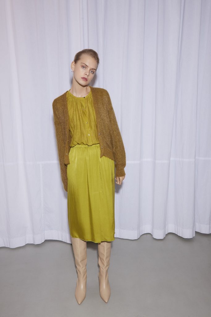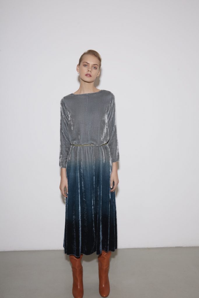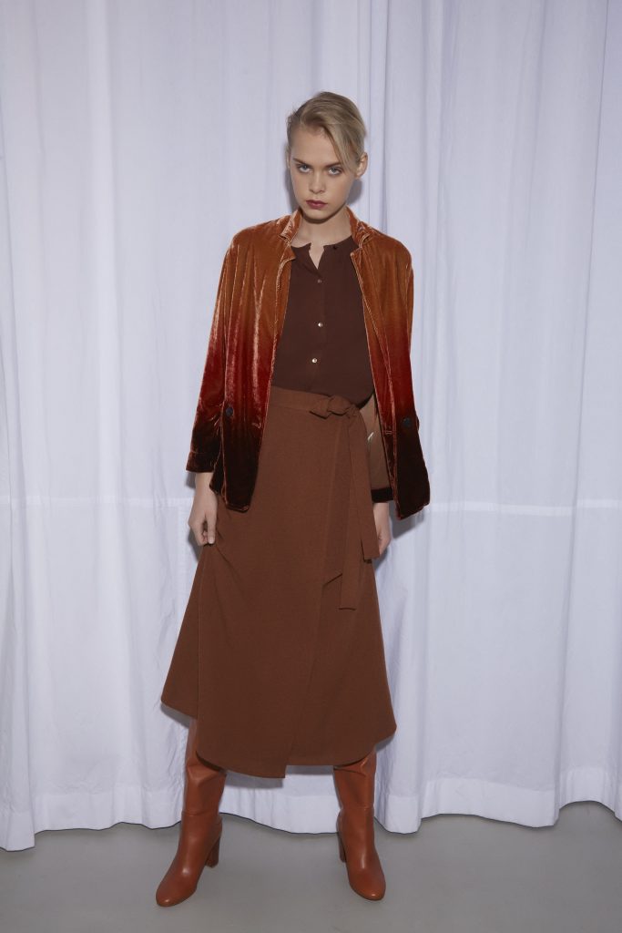 Partendo da questo quadro creativo, la collezione si veste di nuovi colori tra le molteplici tonalità che caratterizzano questi attimi della giornata. La rugiada contraddistinge la collezione con colori tenui e delicati, come avena, vaniglia, rosa antico e acqua, fino a sussurrare un armonioso risveglio con tocchi più accessi e vivaci, ricchi di energie come il color mosto, ciclamino e smeraldo.