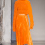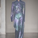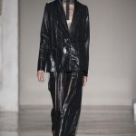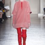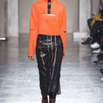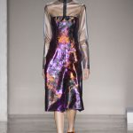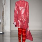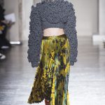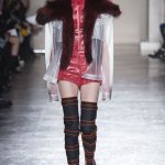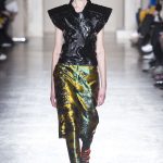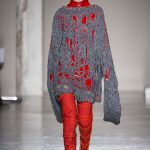 Mix and match è il filo conduttore Cristiano Burani Fall Winter 18/19 che abbina i tessuti in vinile e lattice a maglie in lana, a lavorazioni a mano dall’effetto tridimensionale. Il vecchio si allea col nuovo creando un contrasto di tendenza, il rock si sposa con il romantico e gli omini di Keith Haring sembrano prendere forma dalle maglie con lavorazioni ton sur ton.