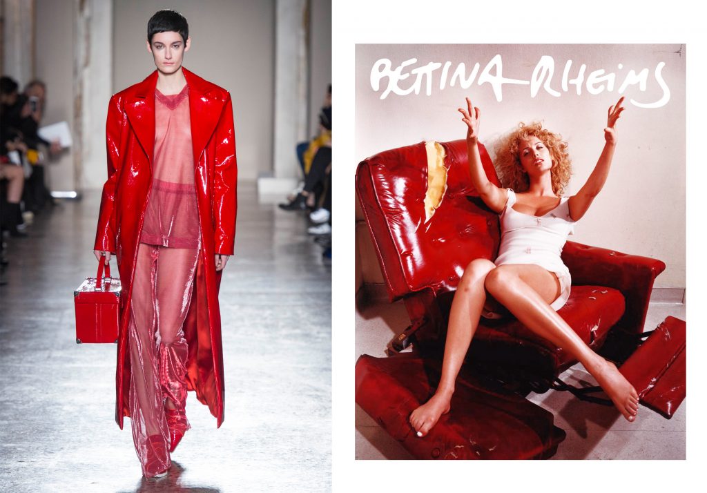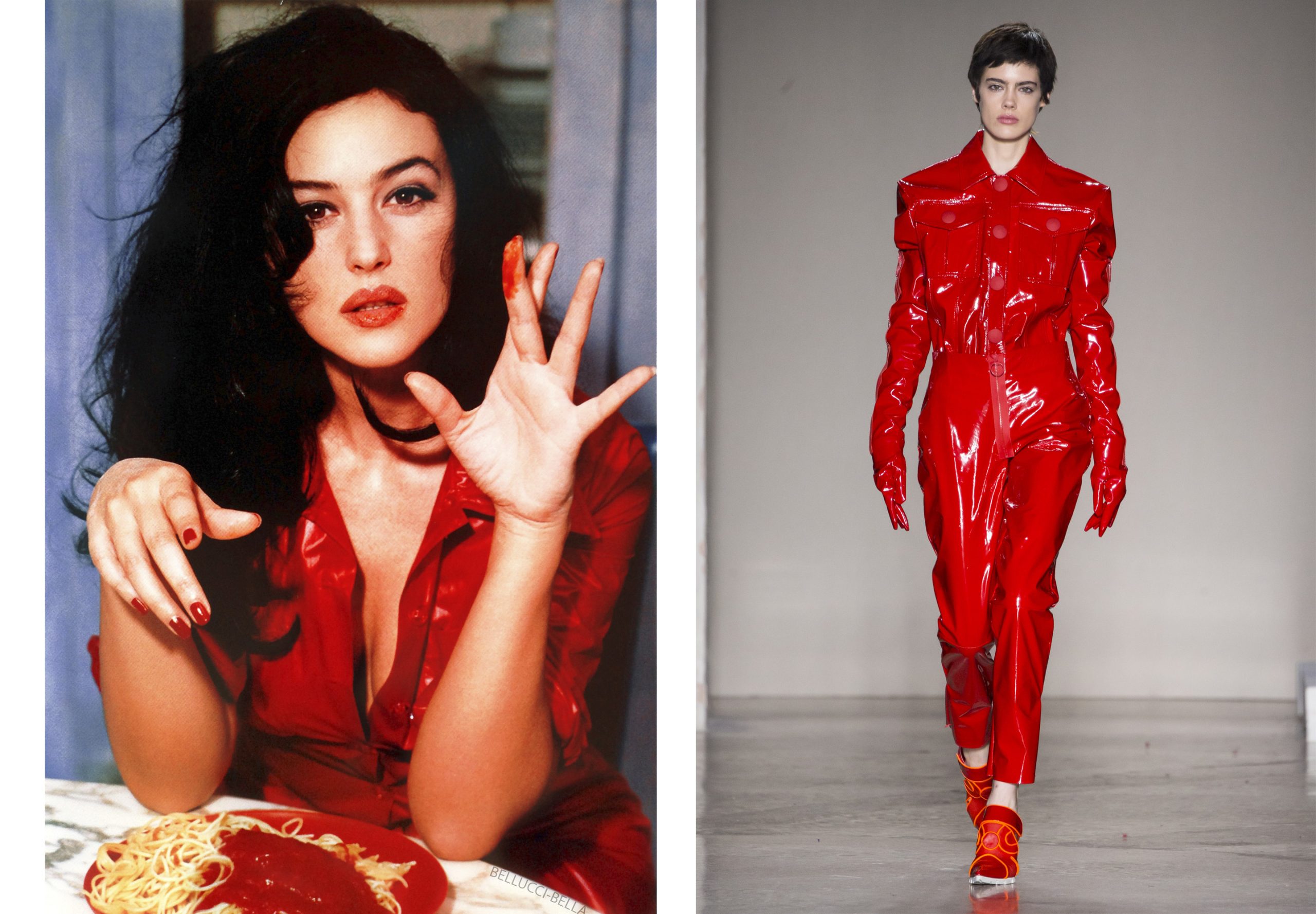 Più esplicita la provocazione tutta femminile dell’uso di latex, vernice, vinile, per jumpsuits, trench, guanti, stivali, tessuti che catturano luce e sguardo, tanto amati anche da Bettina Rheims, il cui ritratto di Monica Bellucci è qualcosa di indimenticabile.