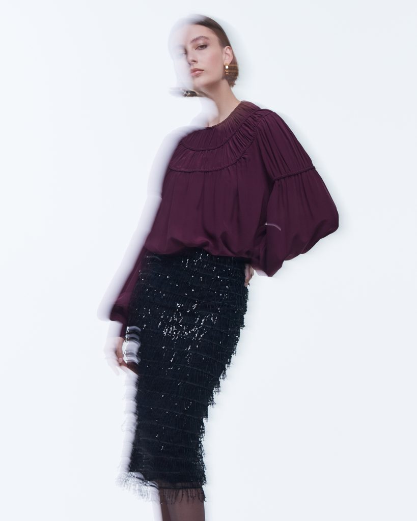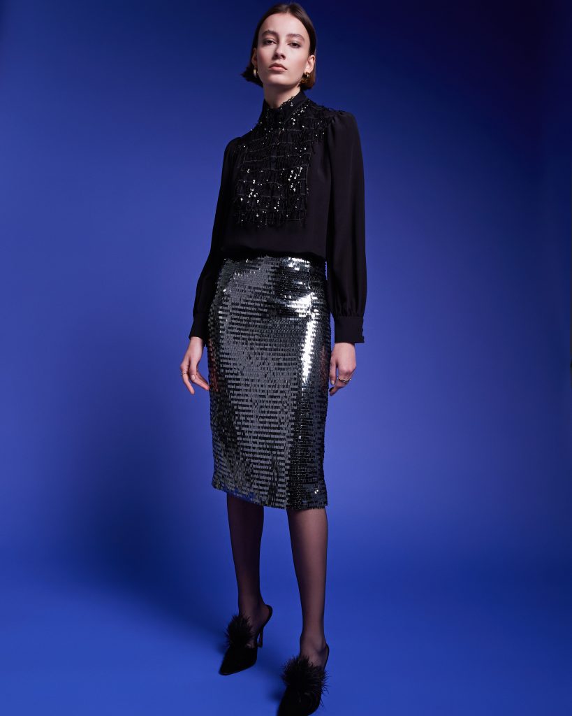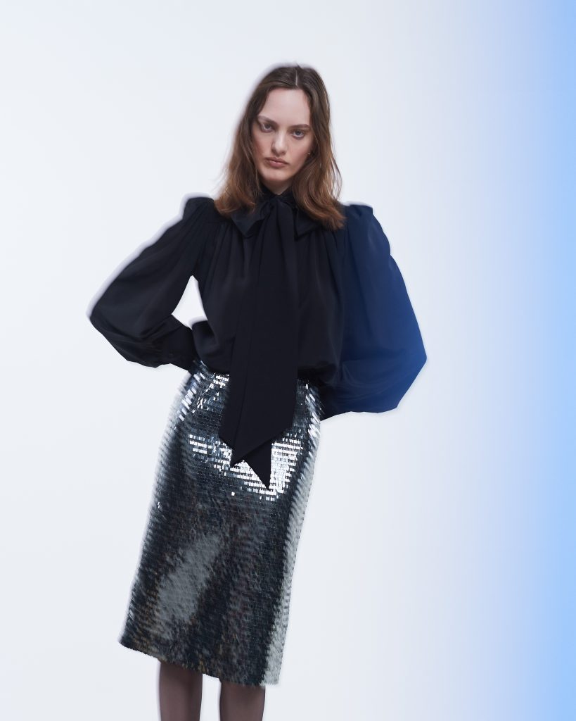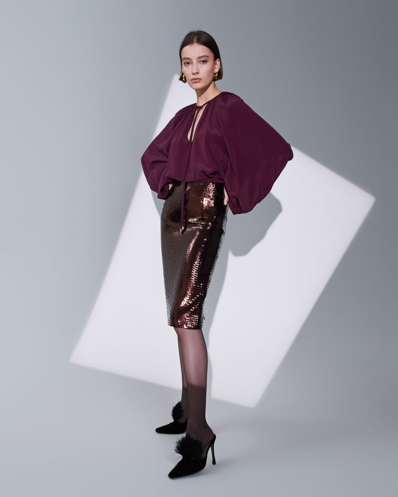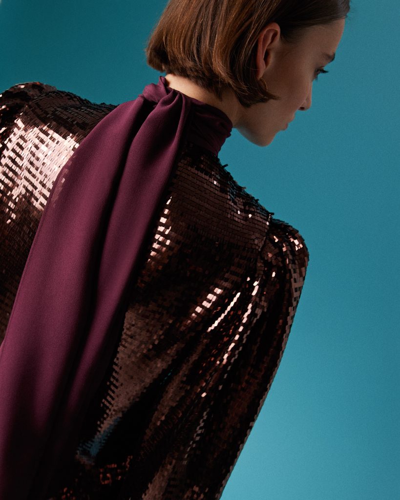 Una notte che si anima. Di glamour, di luce, di vita. Il Grande Gatsby meets Studio 54. L’aristocrazia a stelle e strisce si contamina con tracce disco mixando i ruggenti Twenties e gli anni dell’edonismo, due momenti di grande boost economico ma anche artistico. Un clash che diventa la linea guida per la collezione autunno inverno 2023/24 firmata Phaeonia.