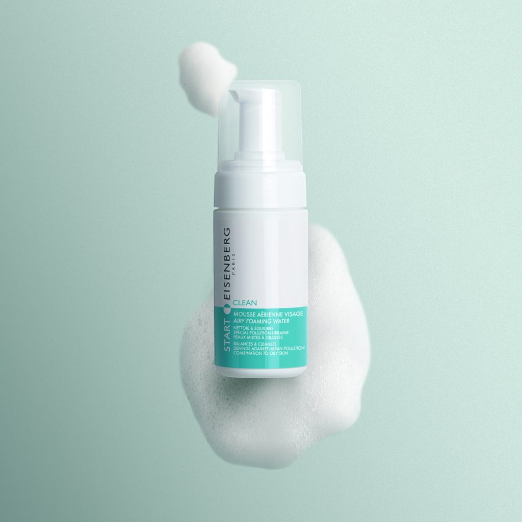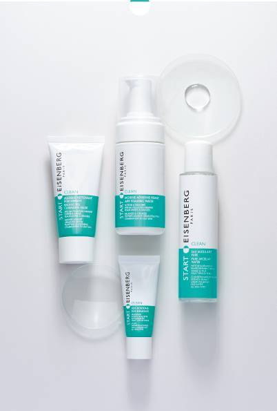 La fase di detersione con START CLEAN si compone di 4 prodotti: Eau Micellaire Pur, Mousse Aerienne Visage, Masque Nettoyant Equilibrant e SOS Boutons per per contrastare le aggressioni dell’ambiente urbano giorno dopo giorno.