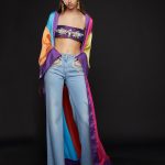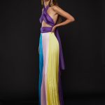 Un loop iconico che sceglie tessuti nobili, dai riflessi accesi e scattanti, che si ferma su silhouette precise e dai volumi inaspettati – molto macro, a ballon, capaci di esplodere in un trionfo di tulle e di balze- in cui l’unica regola è uscire dagli schemi. Ma con grazia. Ecco taffetà, organza, georgette di seta: effetti danseuses enfatizzati dall’abbinamento con la tela denim tie&dye; e ancora irriverente flag couture accesa e scattante nel lungo kimono e nella gonna plissettata mentre la sera acquista un gusto pop tra colori vivaci e forme rivoluzionarie.