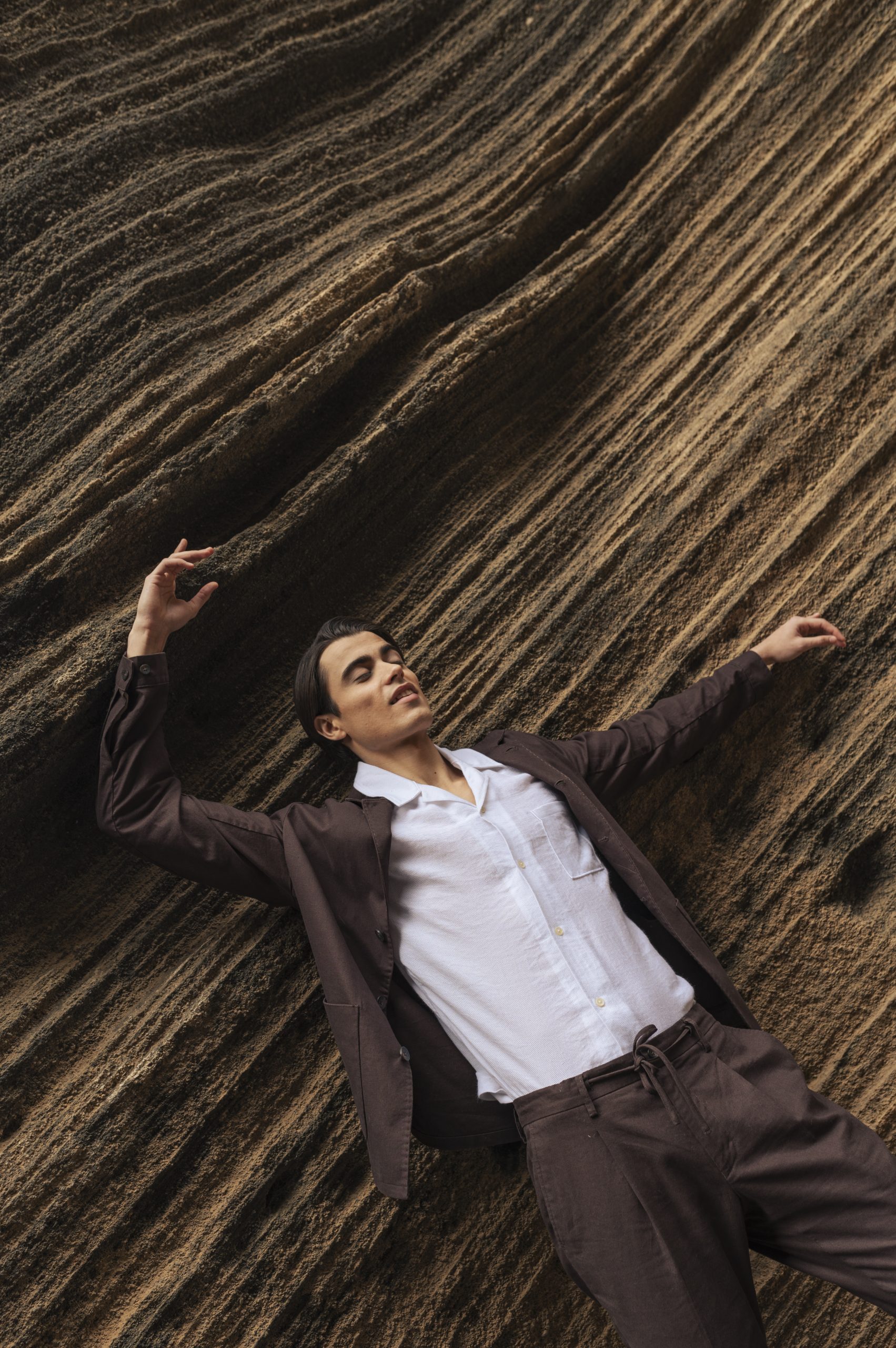 Viaggio al centro della terra. Un itinerario esplorativo verso il fulcro, un’evasione dell’uomo contemporaneo alle radici della propria essenza. La campagna SS 23 di Dan John si lascia suggestionare da paesaggi incontaminati – lontani e a contrasto con il contesto urbano nel quale l’uomo comunamente si muove -, tra deserti di pietra e natura incontaminata. Calamita che cattura l’attenzione, l’eleganza che sboccia in tutta la sua bellezza, come un fiore si fa strada in un territorio aspro.